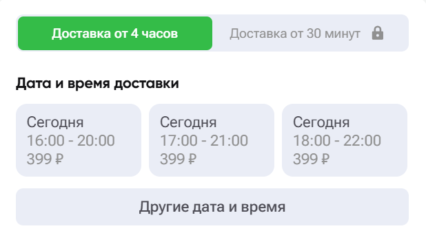 - Переключитесь с доставки от 4 часов на доставку от 30 минут.