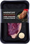 Быстрый просмотрСегодняНет отзывовСтейк из говядины Мираторг Стриплойн с маслом и травами 335г1 259 ₽Скидка −15%Цена 1 069 ₽/штвместо 1259.Купить