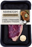 Быстрый просмотрСегодняНет отзывовСтейк из говядины Мираторг Стриплойн с маслом и травами 345гЦена 1 126 ₽/штКупить
