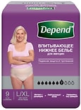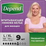 Быстрый просмотрСегодня4.988Впитывающее нижнее белье Depend женское L/XL 9шт1 099 ₽Скидка −27%Цена 799,9 ₽/штвместо 1099.Купить