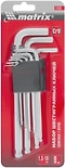 Быстрый просмотрСегодняНет отзывовНабор ключей Matrix имбусовых HEX 1.5-10мм CrV удлиненные с шаром 9шт699,99 ₽Скидка −36%Цена 449,99 ₽/штвместо 699.99.Купить