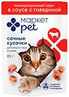 Быстрый просмотрСегодняНет отзывовВлажный корм для кошек Маркет Pet Сочные кусочки в соусе с говядиной 85гЦена 29,99 ₽/штКупить