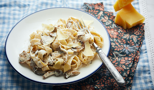Отварите макароны и отлейте чашку воды из-под макарон (200 мл). Смешайте макароны с запеченными овощами и свежими черри, разрезанными пополам. При необходимости долейте воды. Приправьте на свой вкус и смешайте с тертым пармезаном.