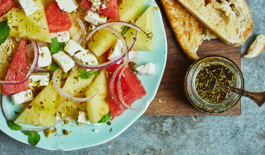Простой летний смузи из арбузной мякоти и сока лайма готовится за считанные минуты и великолепно заменяет лимонад. И не забудьте несколько листиков мяты - для свежести!