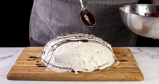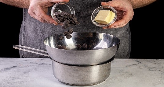 Приготовьте глазурь. На водяной бане растопите и смешайте шоколад и сливочное масло.