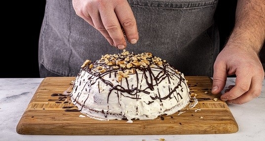 Посыпьте измельченными грецкими орехами и уберите в холодильник еще на 1 час.
